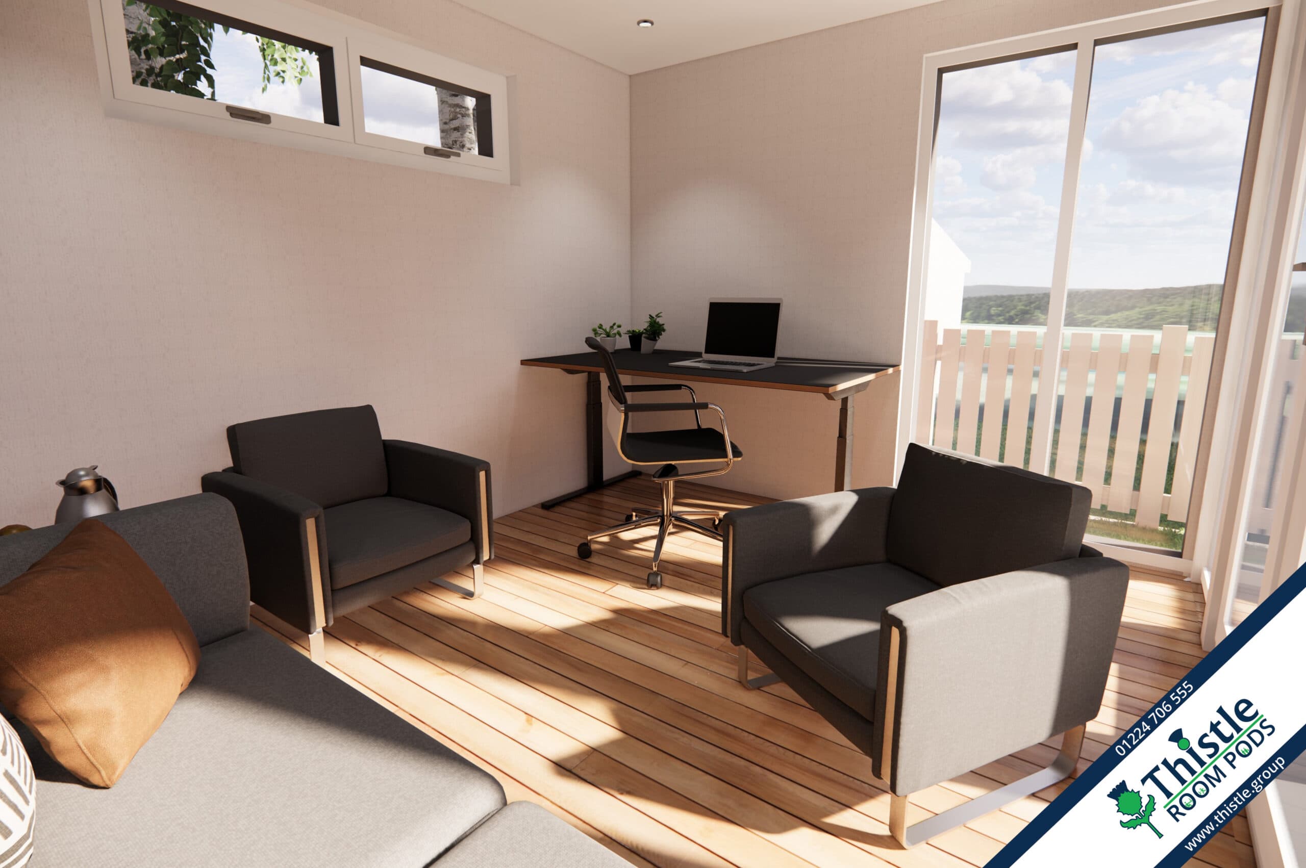 Thistle Room Pods are High-Quality, Low-Maintenance Garden Rooms, available in a selection of designs which can be configured and personalised for a wide range of uses.