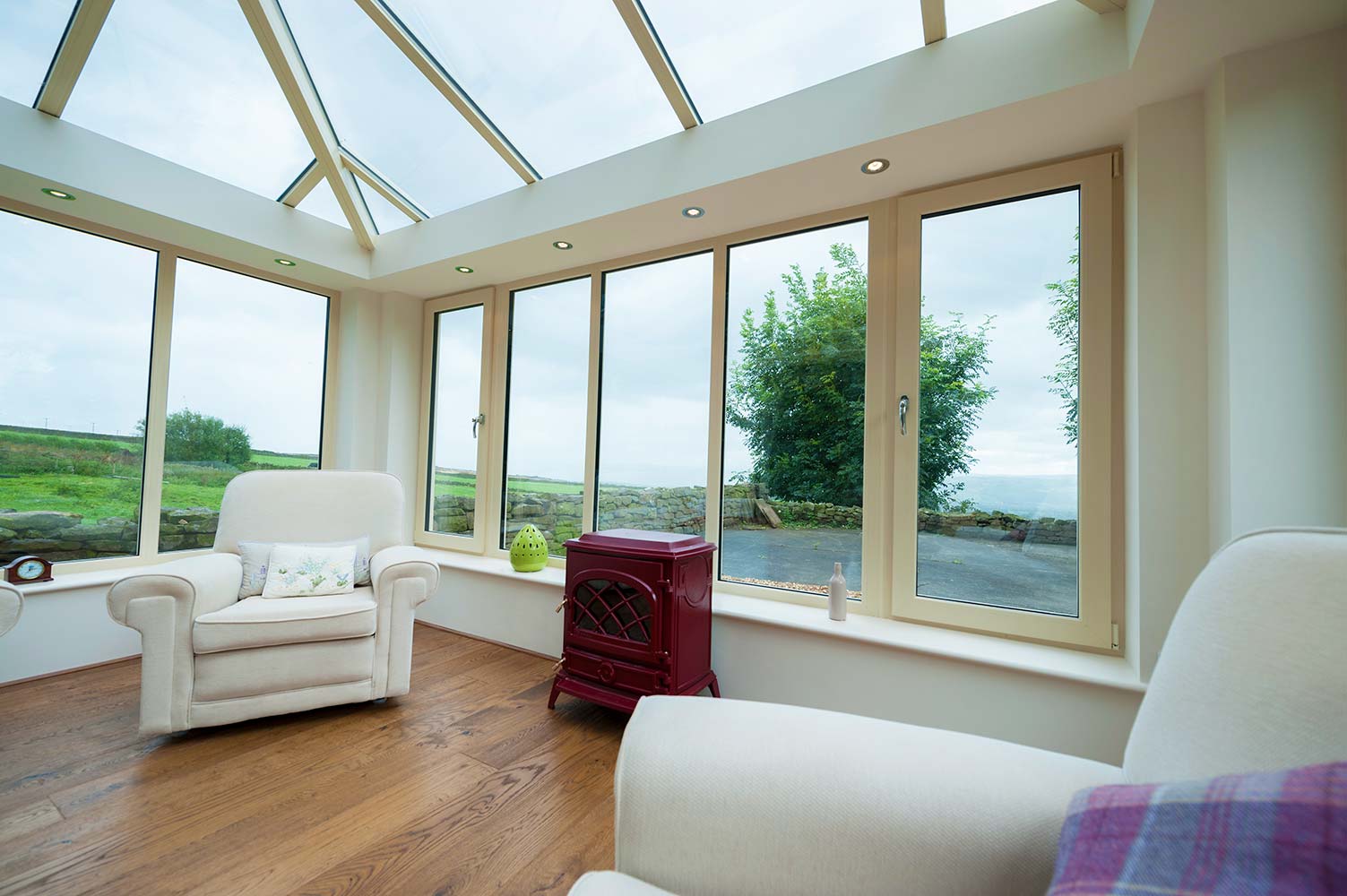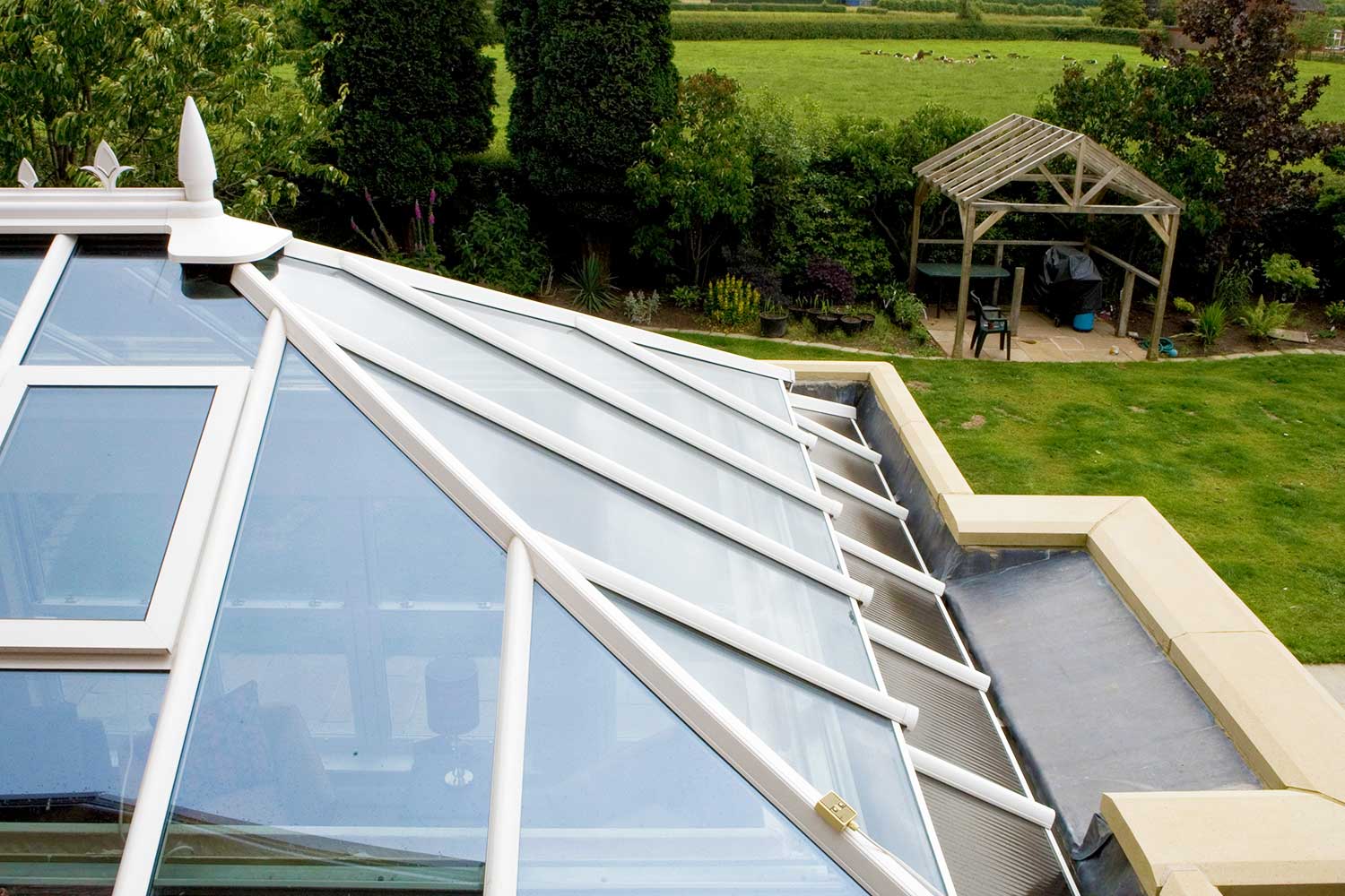 Externally a Traditional Orangery features a flat roof around the perimeter along with a structural grade aluminium roof capped and clad with low maintenance thermal pvc cappings and claddings.