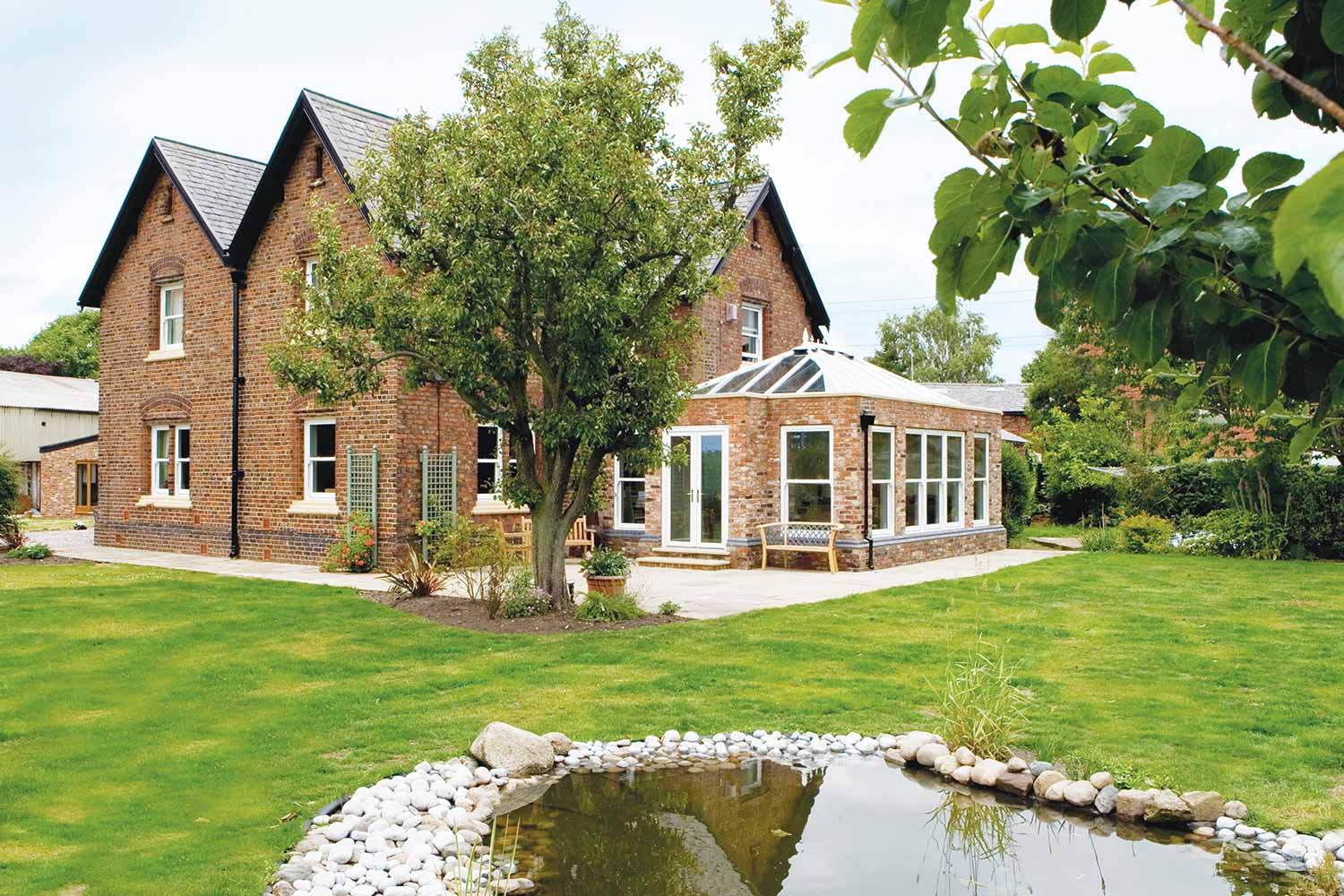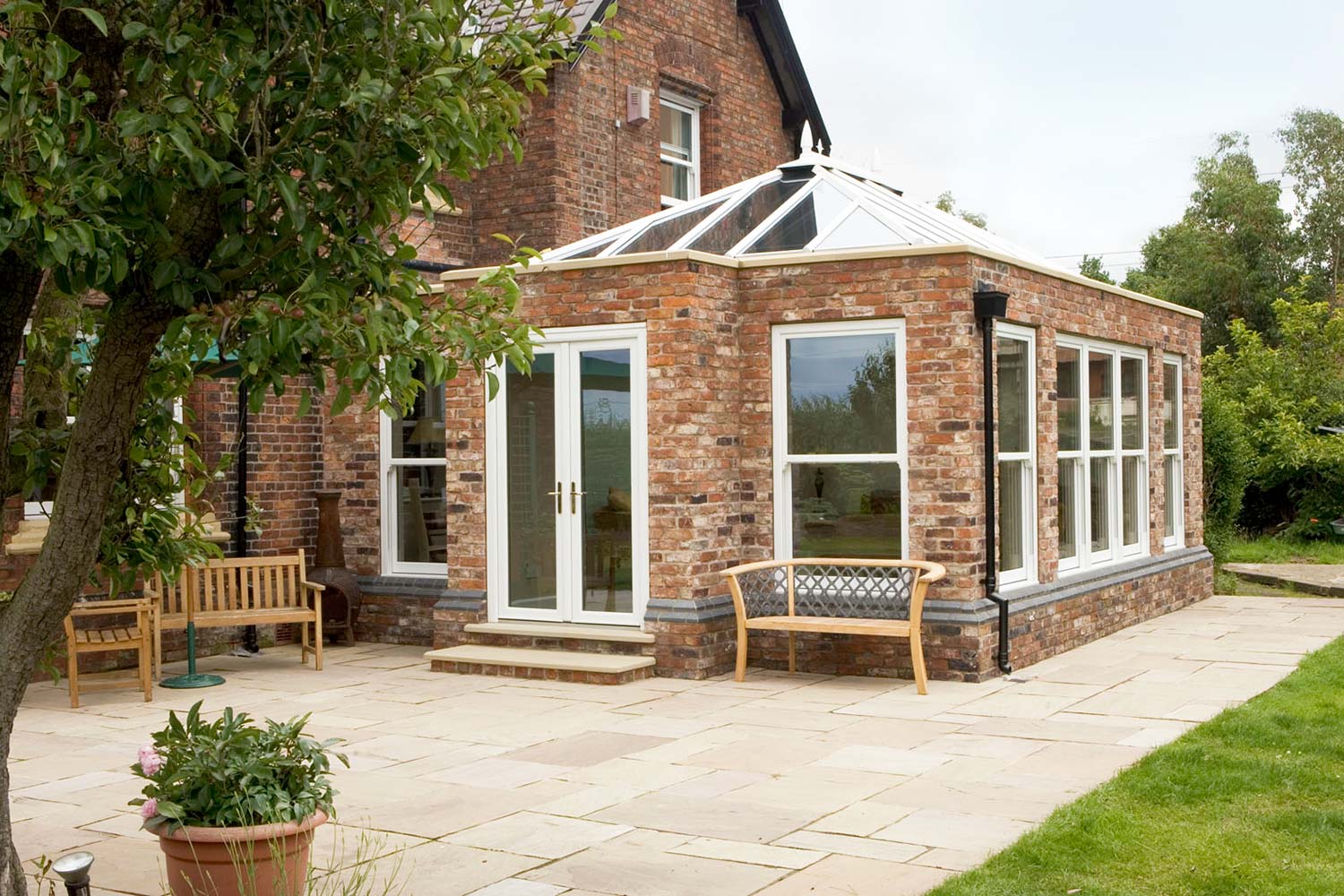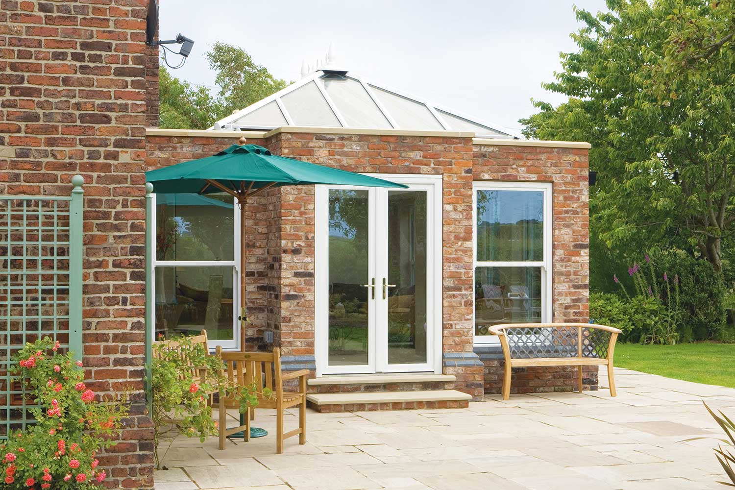Featuring brick pillars, orangeries offer more privacy than conservatory styles and the interior height provides a breathtaking focal point through which light floods into your home – offering a seamless link between your home and garden.