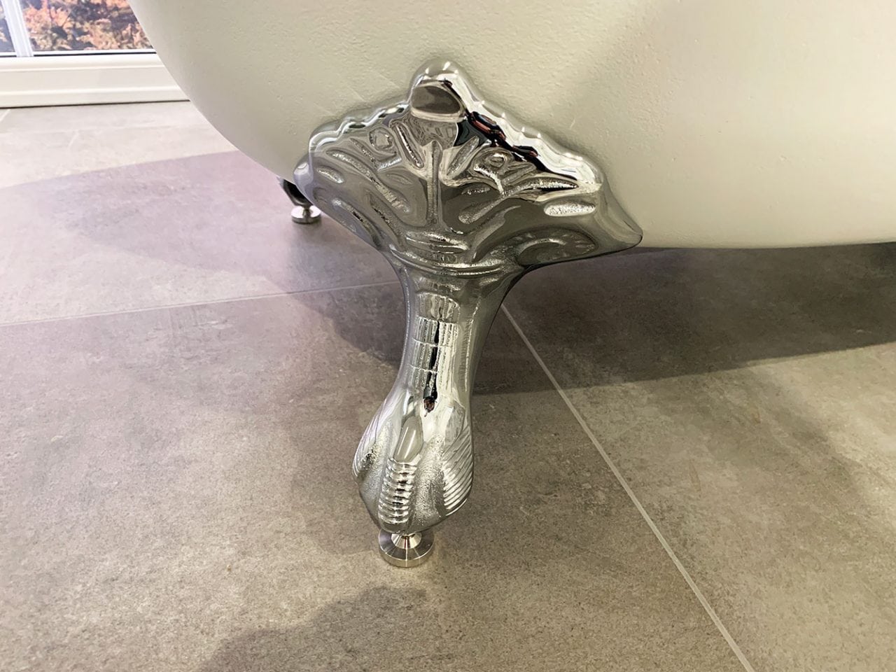 This display features a stunning Roca Eliptico Freestanding Bath, made of sturdy cast iron and designed to last a lifetime! Shown in a White exterior finish, this Freestanding Bath is also available in Grey, Black, Blue, Red or Copper finishes. A choice of feet styles is also available, with the Eagle style displayed however Lion and Ash/Chrome choices are available (Bath Size 1700mm x 500mm minus feet).