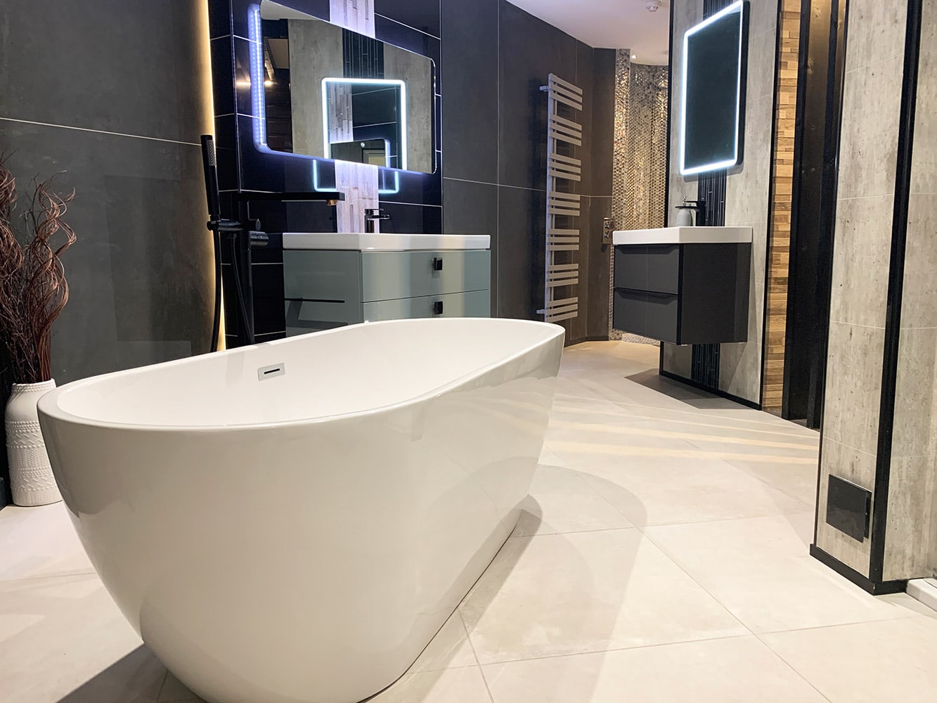 From free-standing baths and space-saving shower enclosures to fitted or modular bathroom furniture – and with a wide selection of taps, mirrors, radiators, flooring, tiles and shower panels on display, the choice is yours!